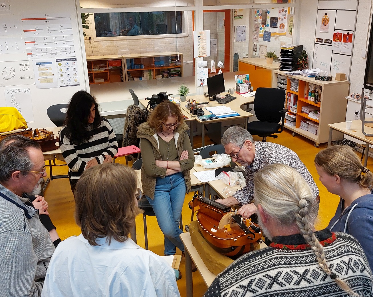 De workshop over draailierverzorging wordt gegeven door Lies Sommer en Sanne van Gendt. Lies is bij de meeste bekend als draailierdocent en als beheerder van onze huur-draailieren. Ze heeft menig gotchy weer opgelapt en zuiver gekregen. Sanne bouwt instrumenten voor nerdy-gurdy. Deze nerdy’s worden over de hele wereld verkocht. Zodoende heeft ze veel kennis over hoe je je nerdy aangenaam kan laten klinken.